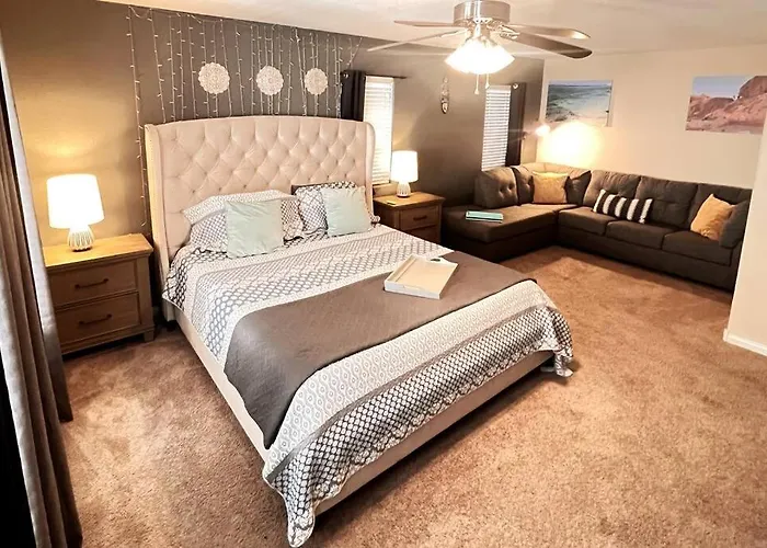 Situada en el barrio Sur de Las Vegas Strip, la villa está a 18 minutos en coche del aeropuerto internacional Mccarran de Las Vegas. Dottys está a unos 10 minutos en coche de esta villa, mientras el Rancho Hábitat del León se encuentra a unos 15 minutos en coche. Situada a 2,1 km de la Iglesia Católica Maronita de San Charbel, la 4Br King Bed Evcharger, 10Min To Strip Raiders Airport! Villa es uno de los destinos favoritos de fieles y turistas.